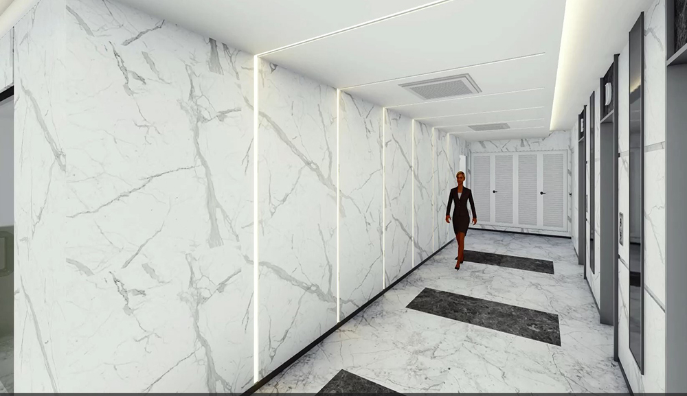 A shabby raw space has been completely transformed into unique space for the customers with combination of industrial look fused with contemporary elements of Pinewood & 3D mirror panelling.